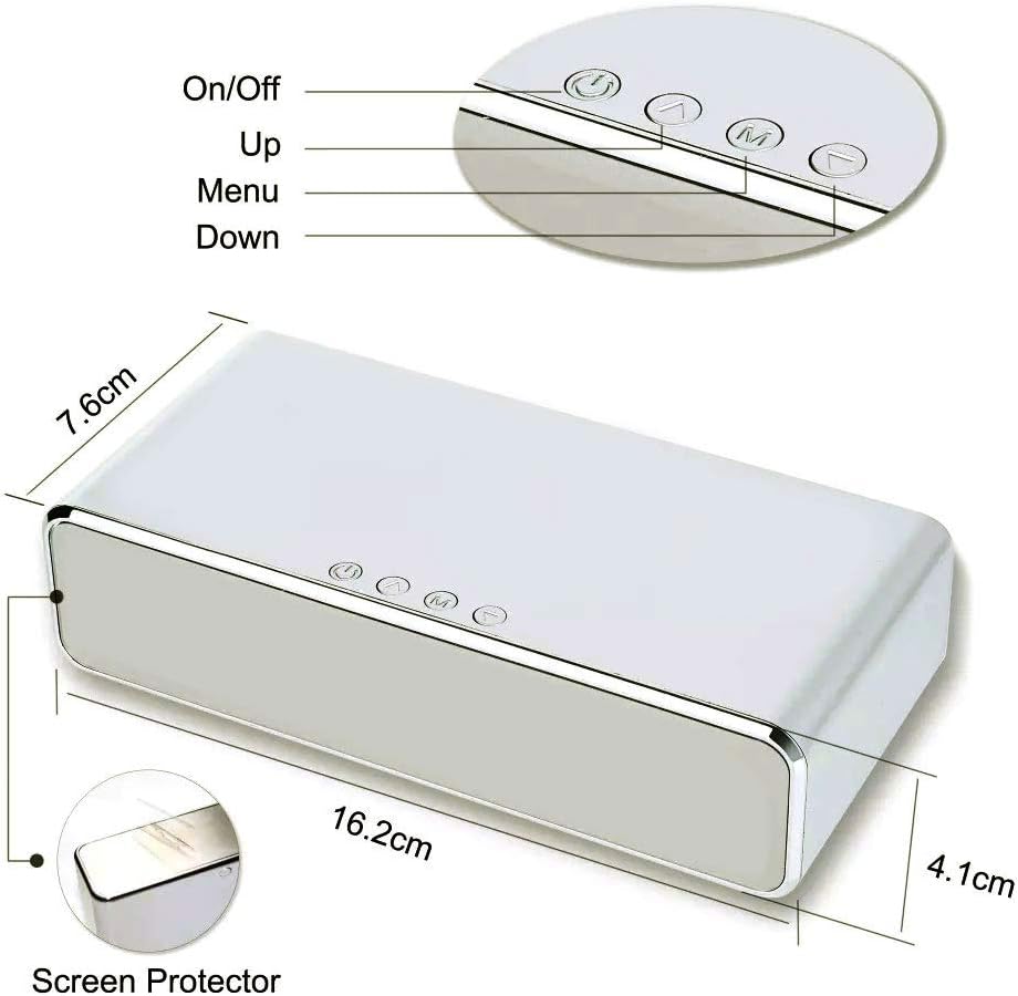 - Mirror Design: Sleek oval design with a mirror-finished screen displays the time and temperature clearly. Dimensions: 16 × 7.5 × 5.1cm (5.9 × 3 × 2 inches). Perfect for makeup touch-ups while being stylish and durable.