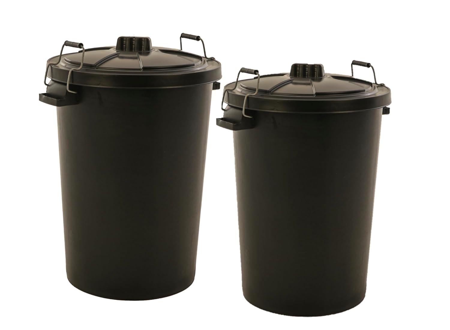 2-Pack Large 90L Black Garden Dustbin - Heavy Duty Plastic Waste Bin with Lid