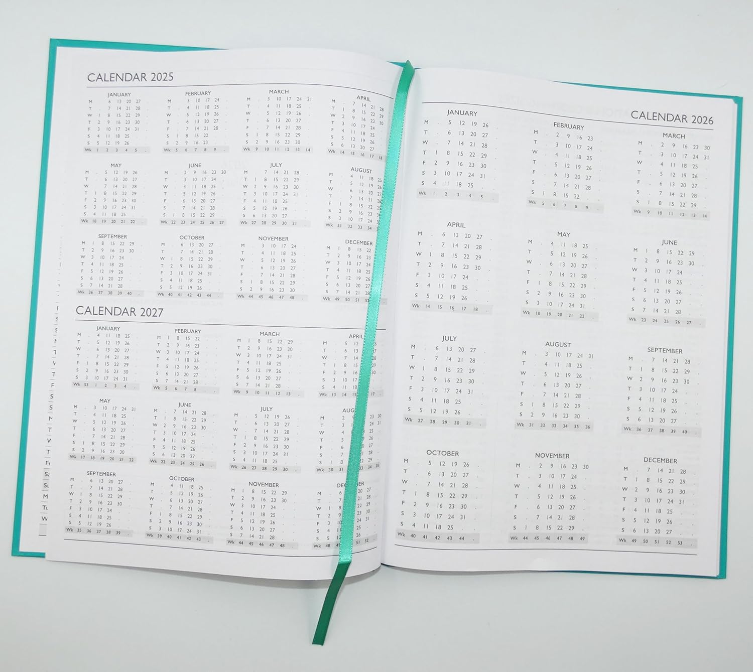 2026 A4 Week to View Diary Colour Fashion A4 2026 WTV Year Planner Desk Diary Ribbon Marker, Turquoise