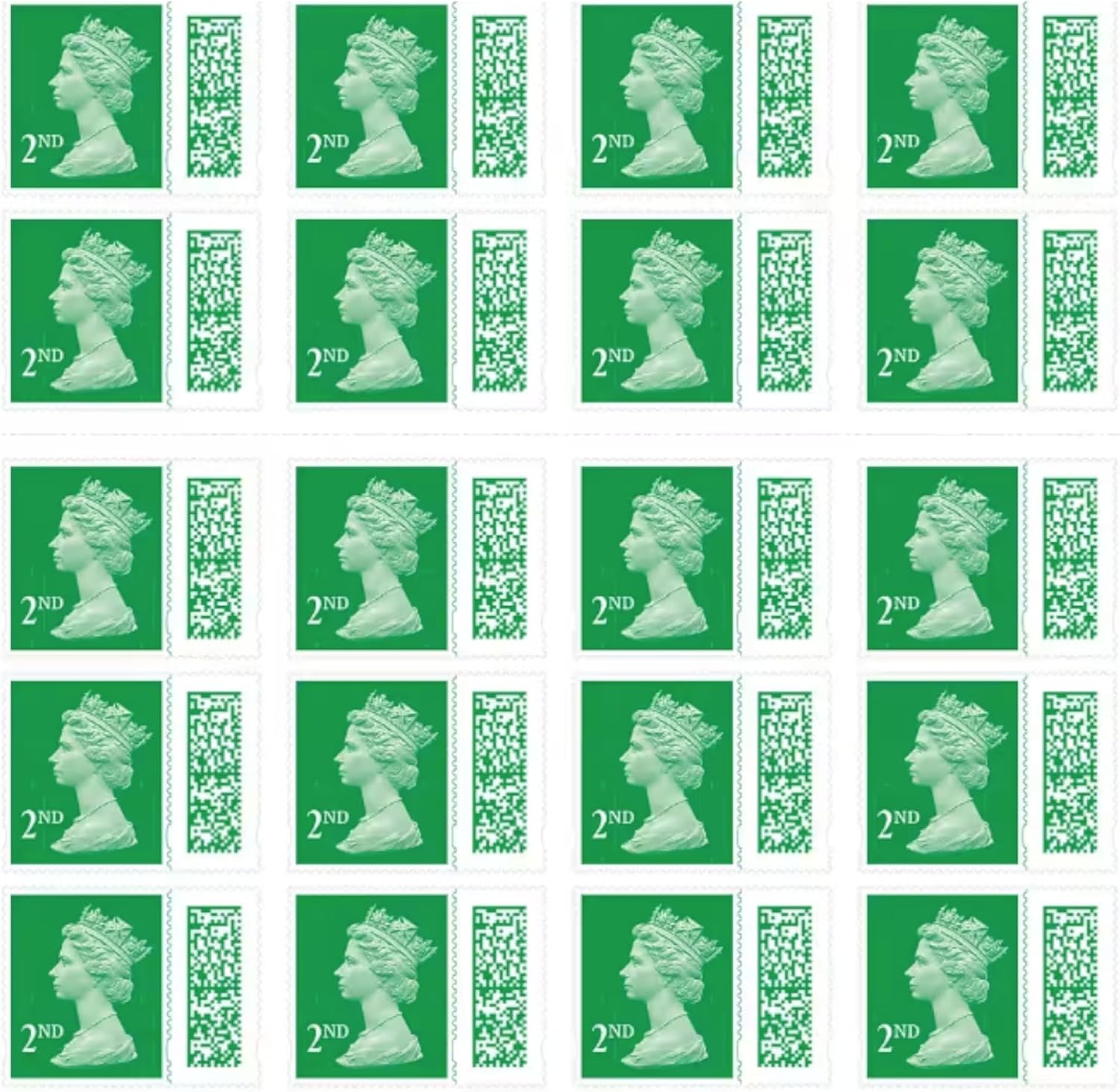 2nd Class Stamps (20 Pack) - Self Adhesive UK Letter Postage Stamps for Standard Mail with Barcode
