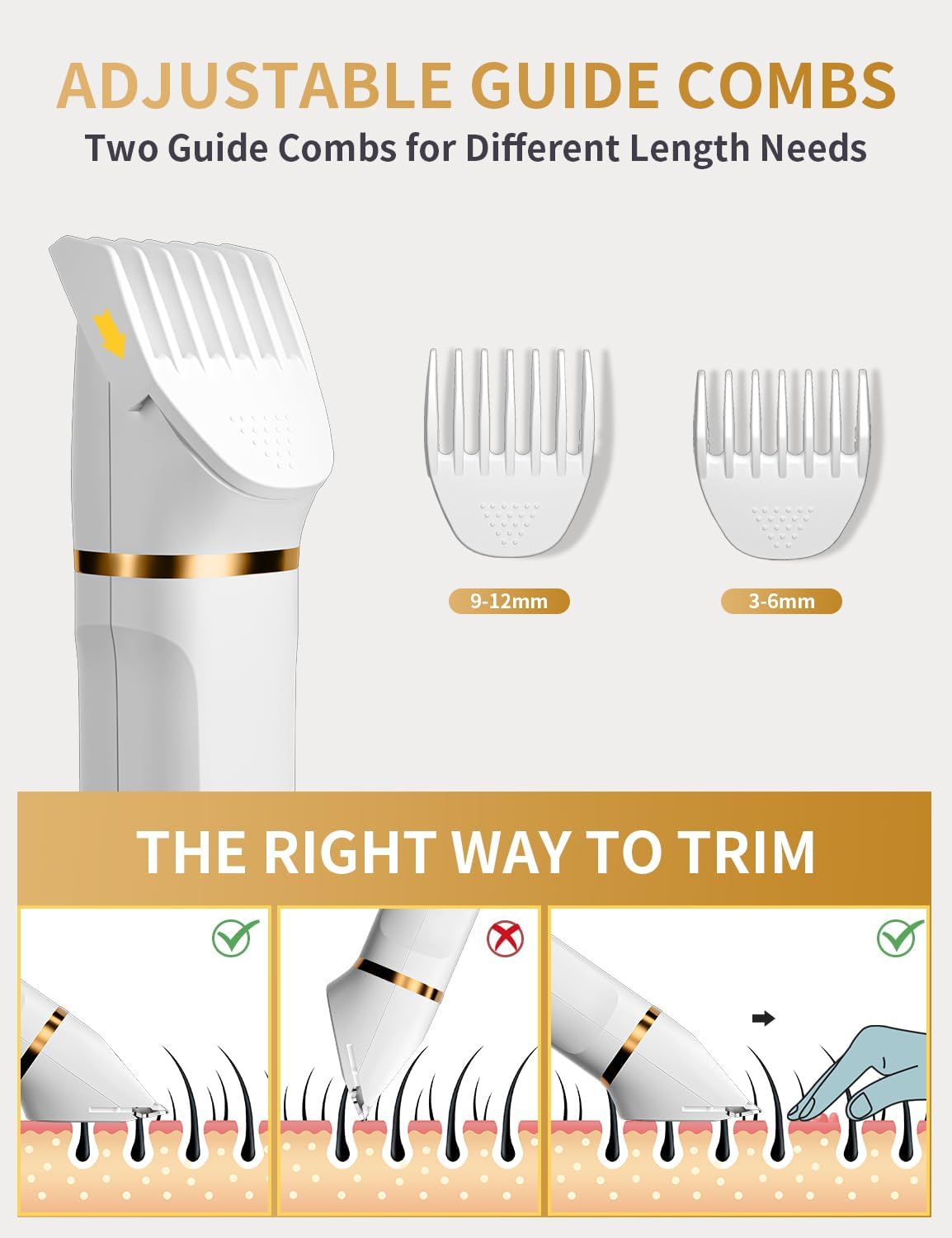 Perfect for grooming your bikini line, legs, underarms, and intimate areas! 👙👣 Includes two versatile comb attachments for different hair lengths, making it safe and gentle even on sensitive skin. 💕