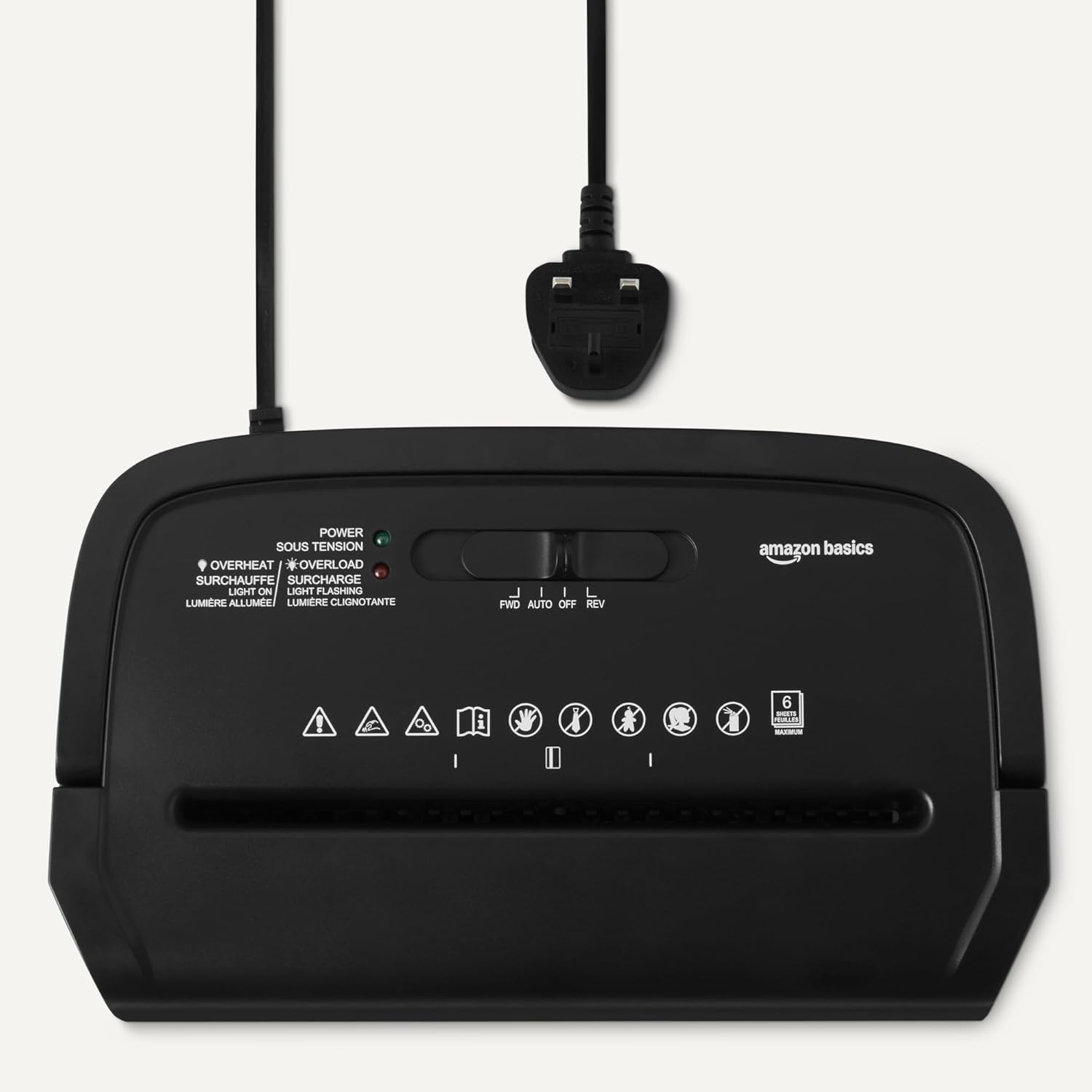 Shreds up to 6 sheets of A4 (80g/m²) at once