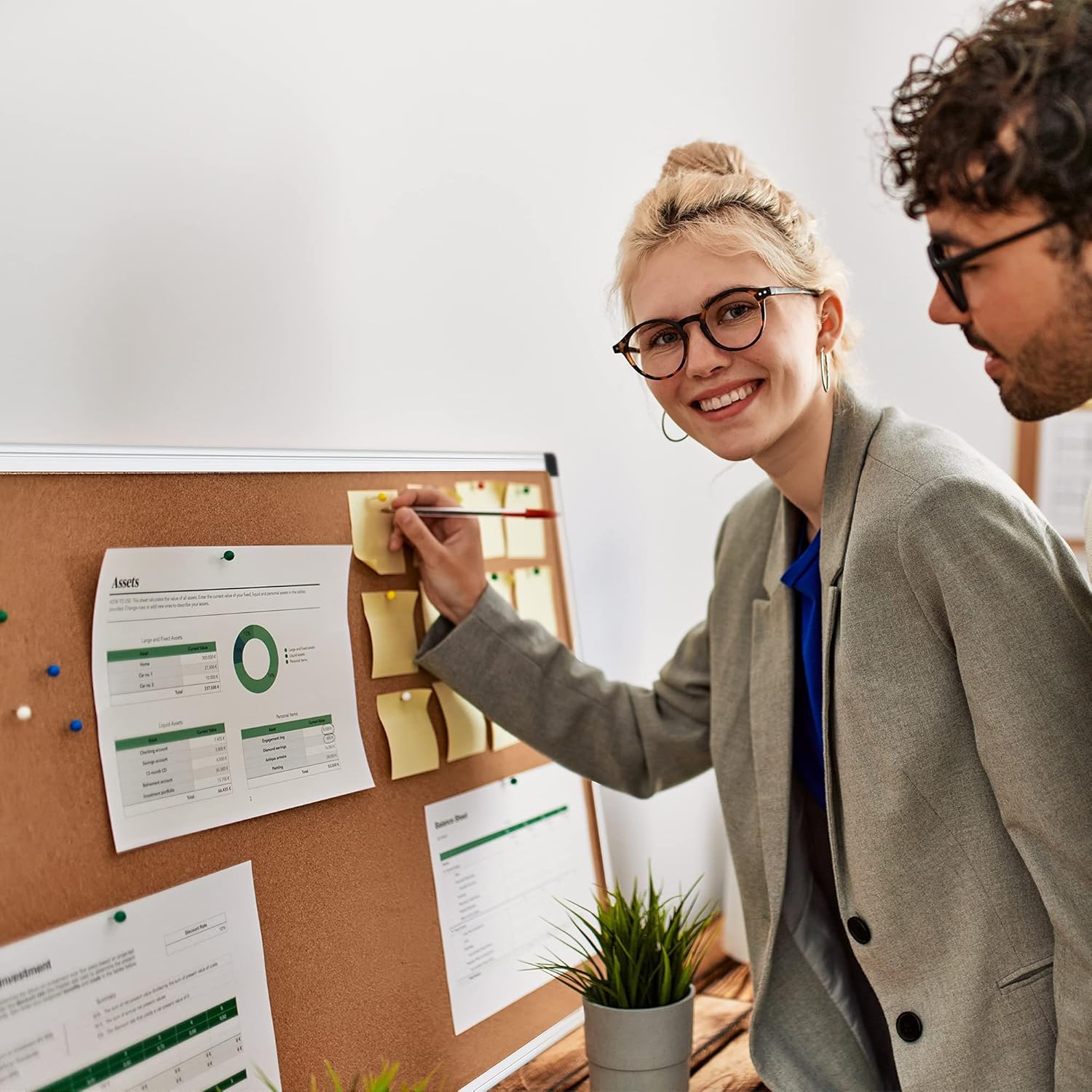- Cork notice board for posting information, announcements, photos, and more; ideal for home or office