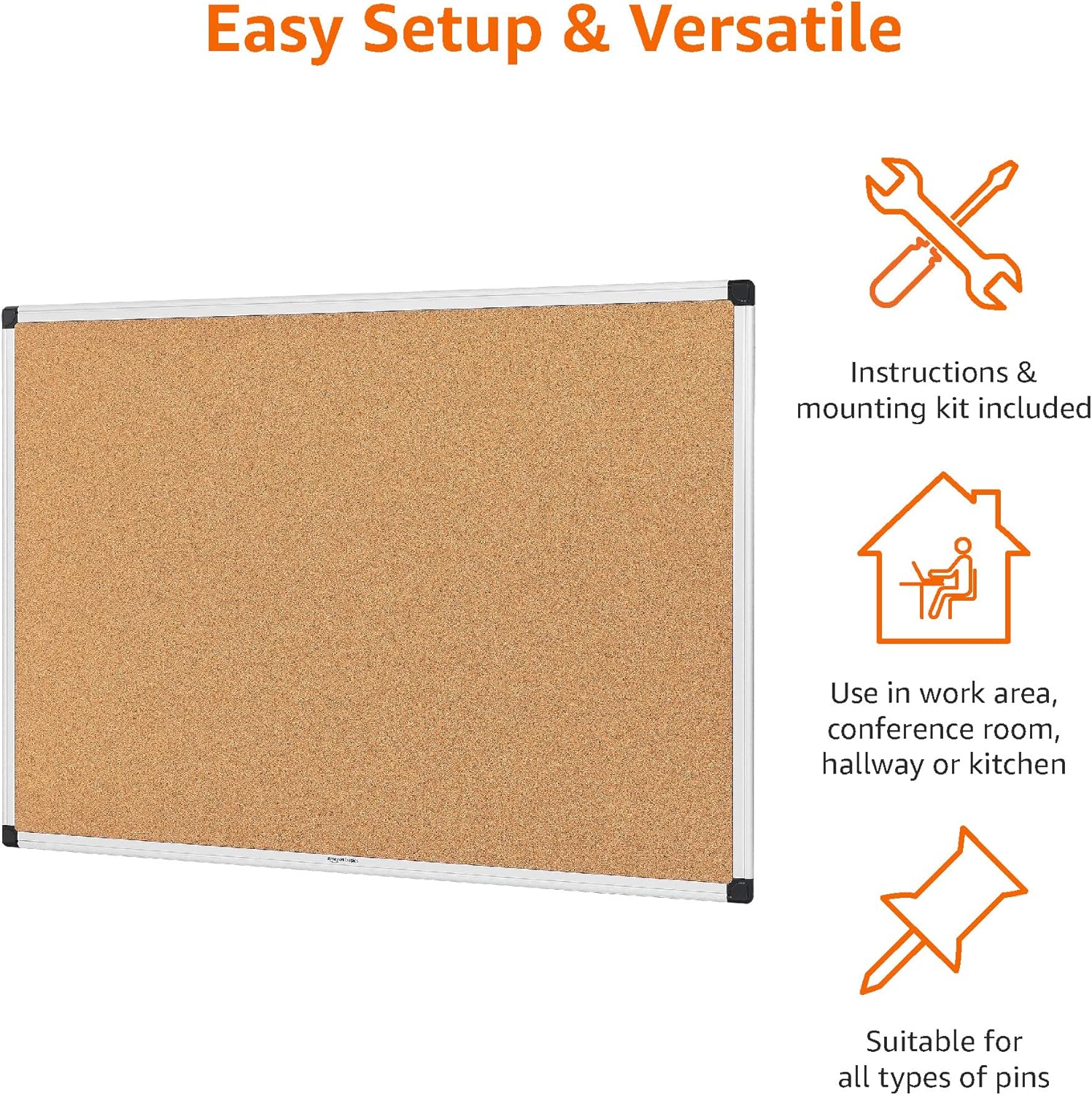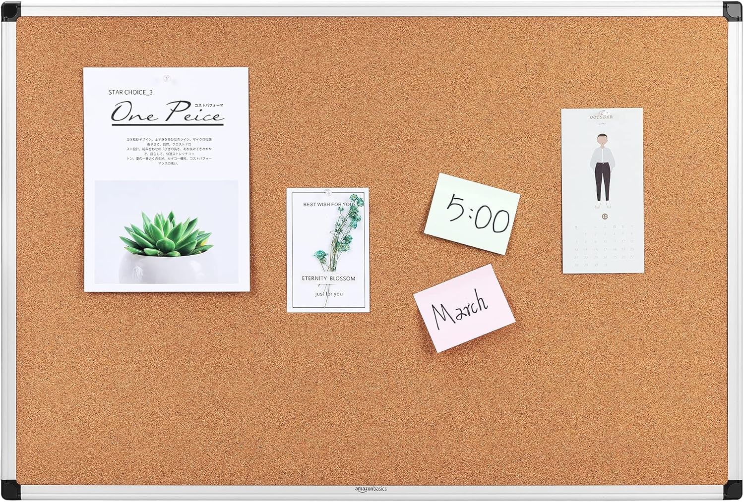 Basics Aluminum Frame Cork Notice Rectangular Board, 90cm x 60cm, Silver
