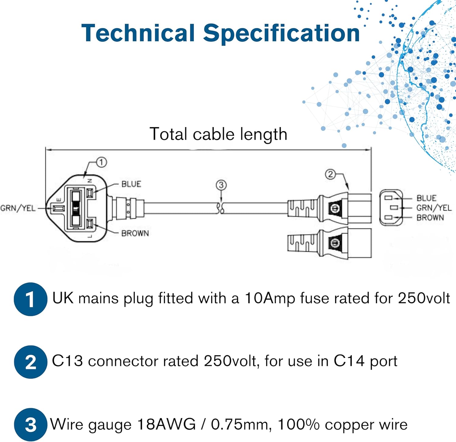 C2G 1M UK Power Cable β IEC C13 to BS1363 Kettle Lead Cord β 3ft, Black