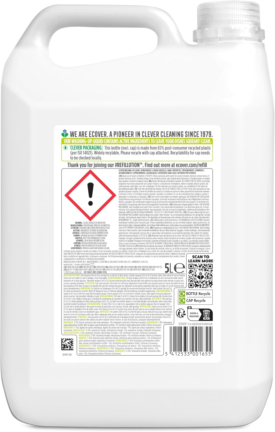 Ecover Washing Up Liquid Refill 5L β Lemon & Aloe Vera | Eco-Friendly Dish Soap