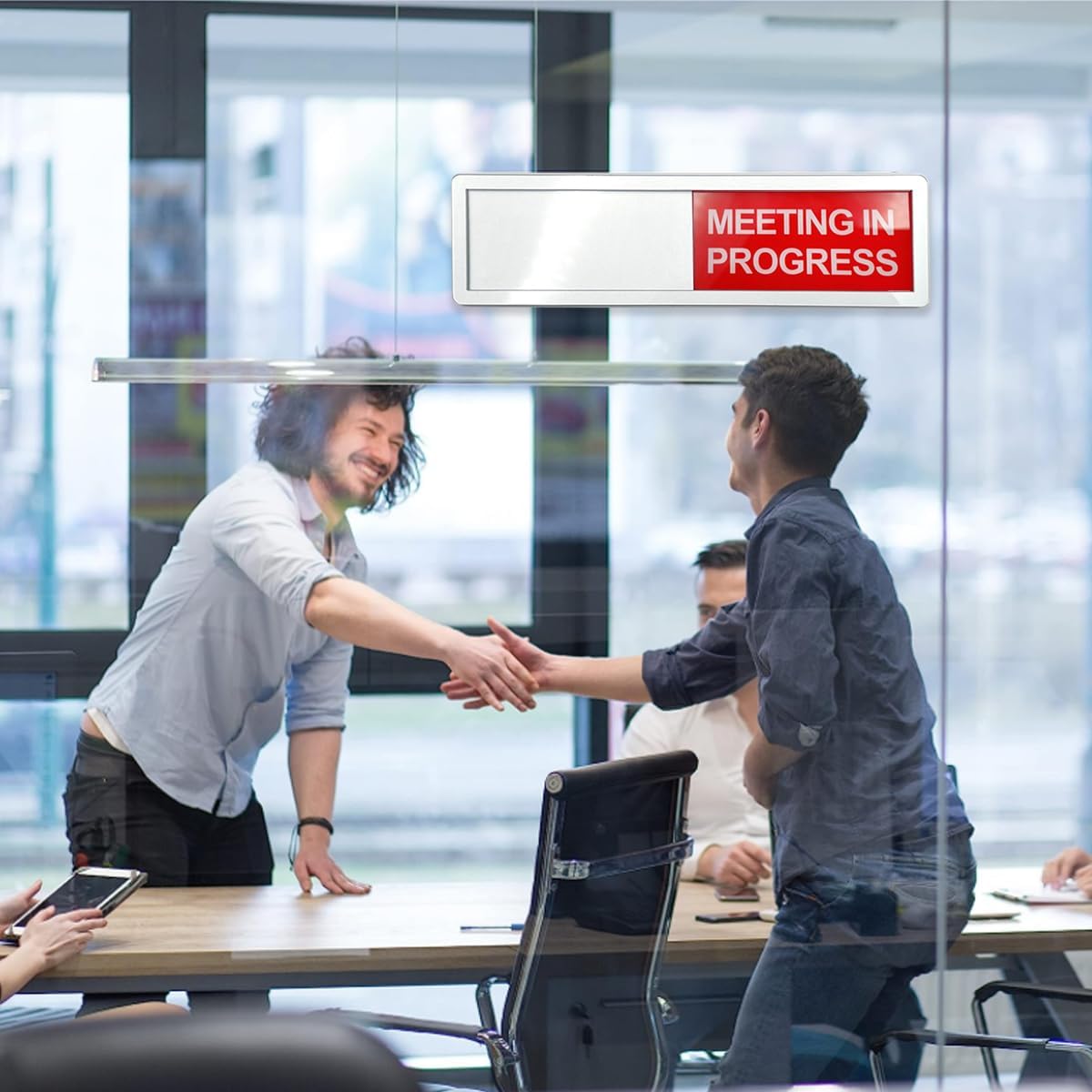 LICQIC Privacy Sign, VACANT/MEETING IN PROGRESS - Sliding Door Sign for Home Office Restroom Conference, Silver