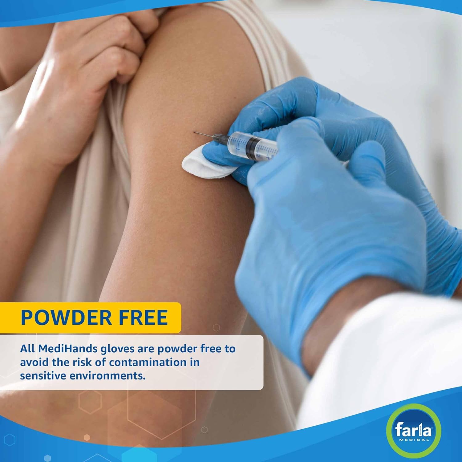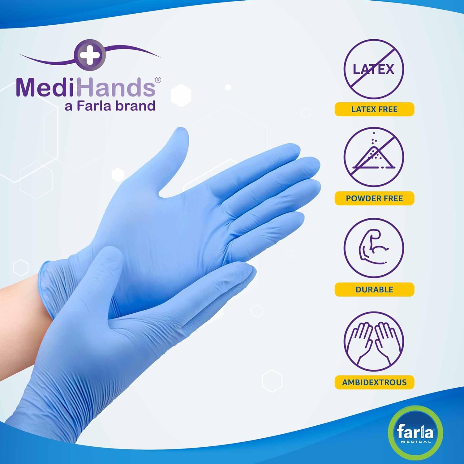- Medical Grade - These gloves disposable have an AQL rating of 1.5, EN455 compliant and CE approved. MediHands Gloves are produced by Farla Medical, an expert manufacturer of medical items used by practitioners worldwide.