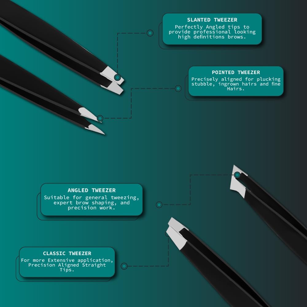 Our slanted tweezers feature expertly aligned tips for flawless control & precision β say goodbye to pinching pain and hello to stress-free grooming! ππ