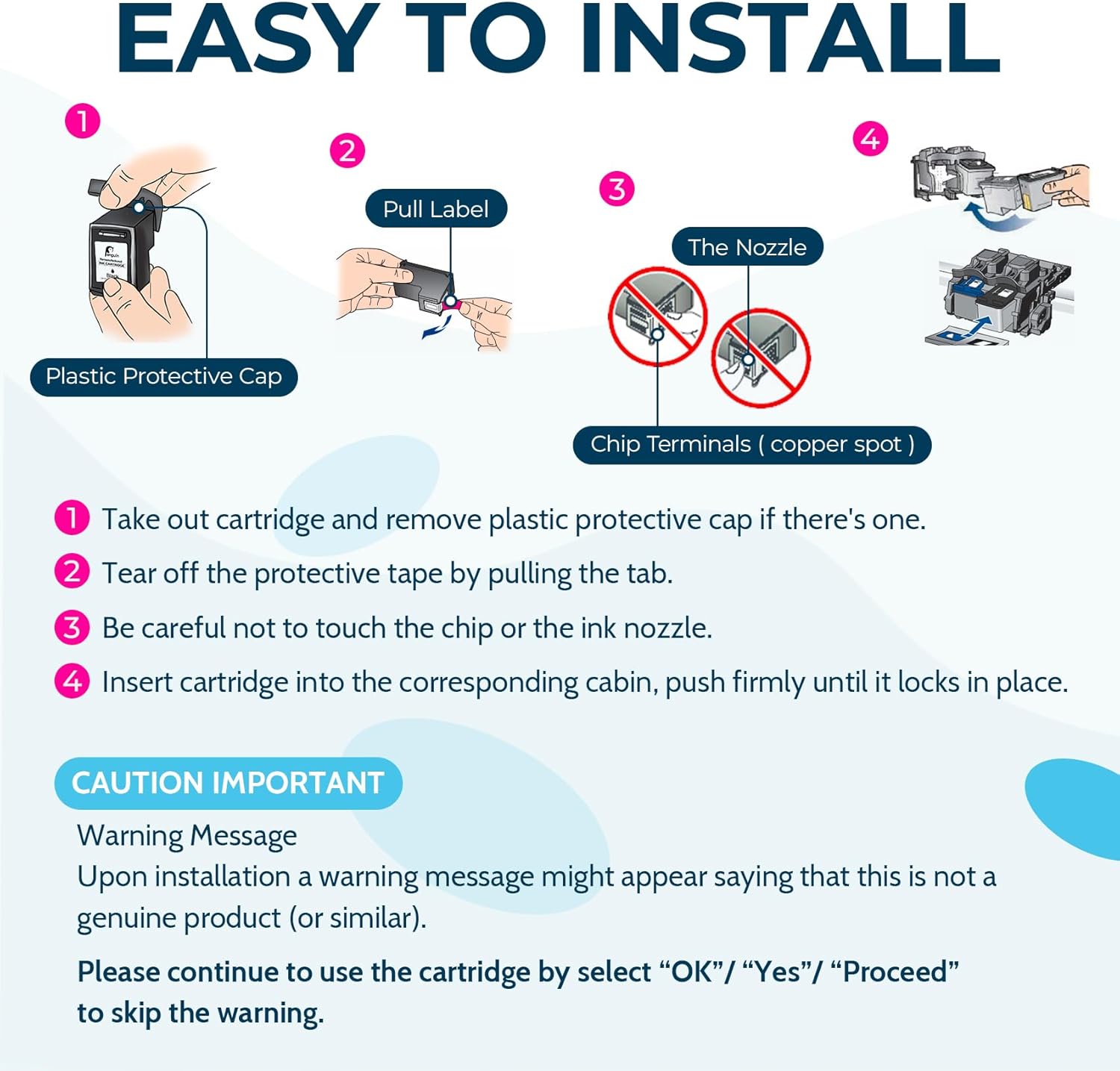 - Easy Installation & Reliable Safety: Quick and effortless setup. Each ink cartridge undergoes rigorous testing to guarantee top performance and stability, without causing any harm to your printer