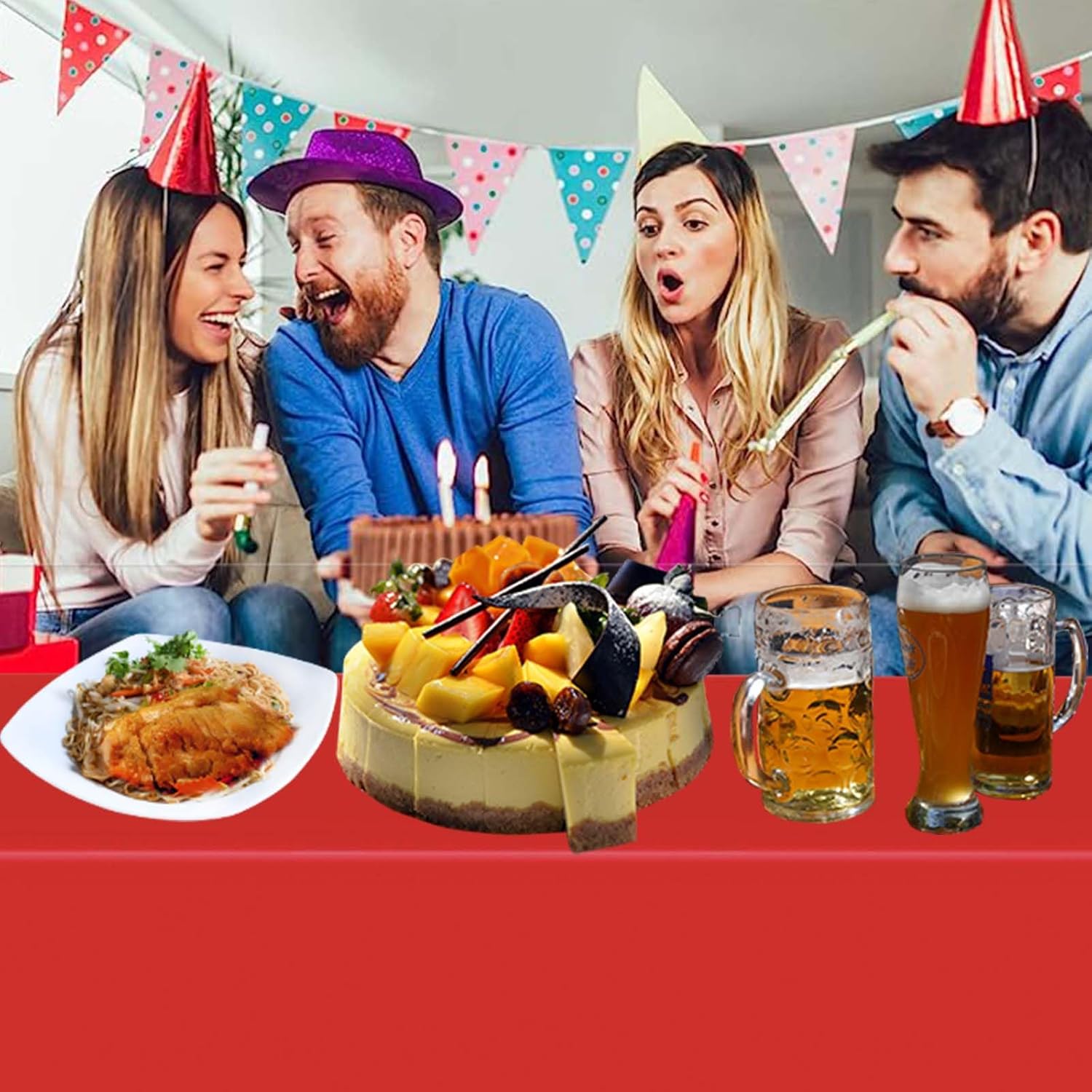 - đăEasy to Clean upă The red table cloth reduce cleanup time, so you can spend more time with friends at birthday party; After the party, just collect all the trash and throw them in the trash.