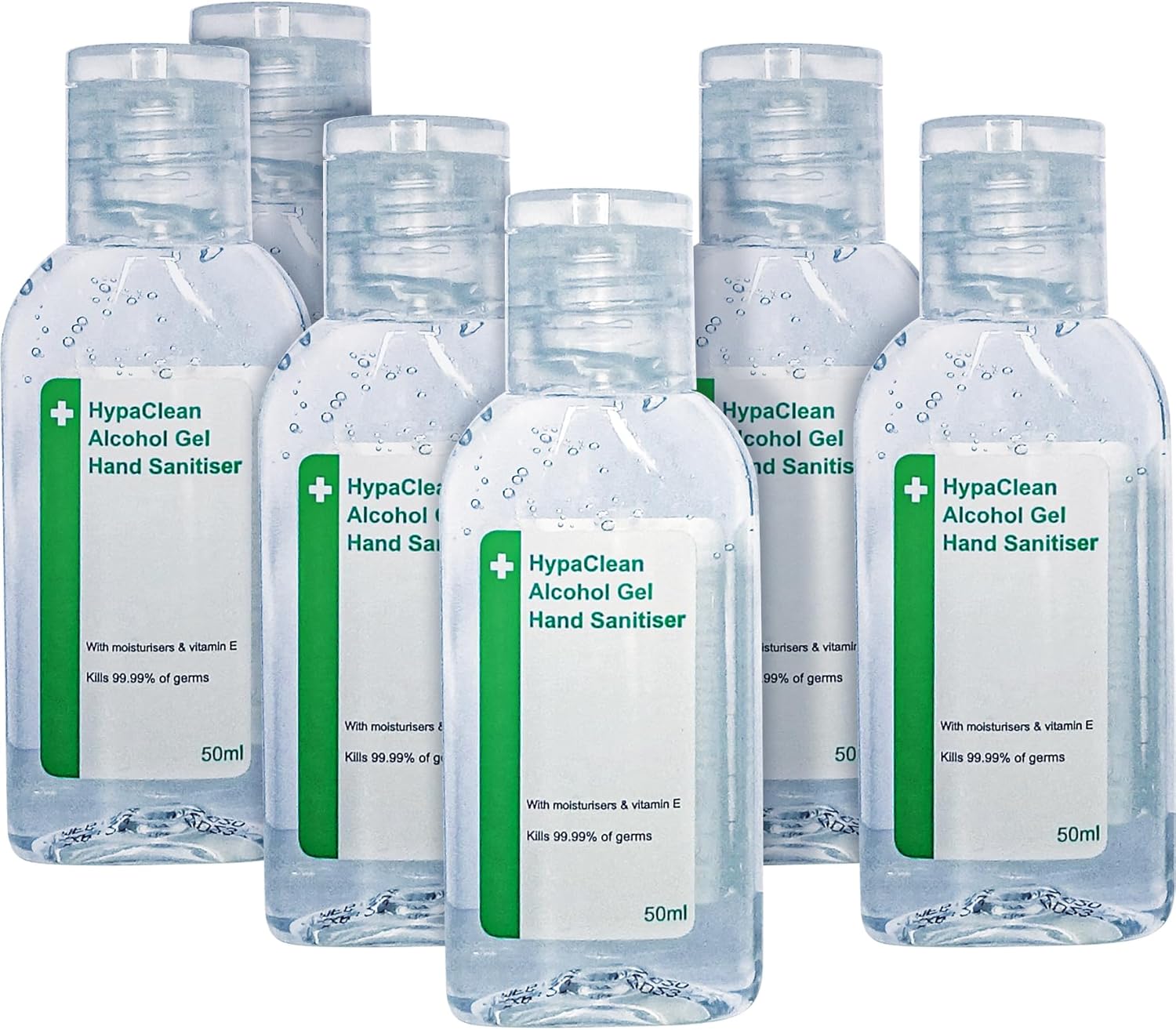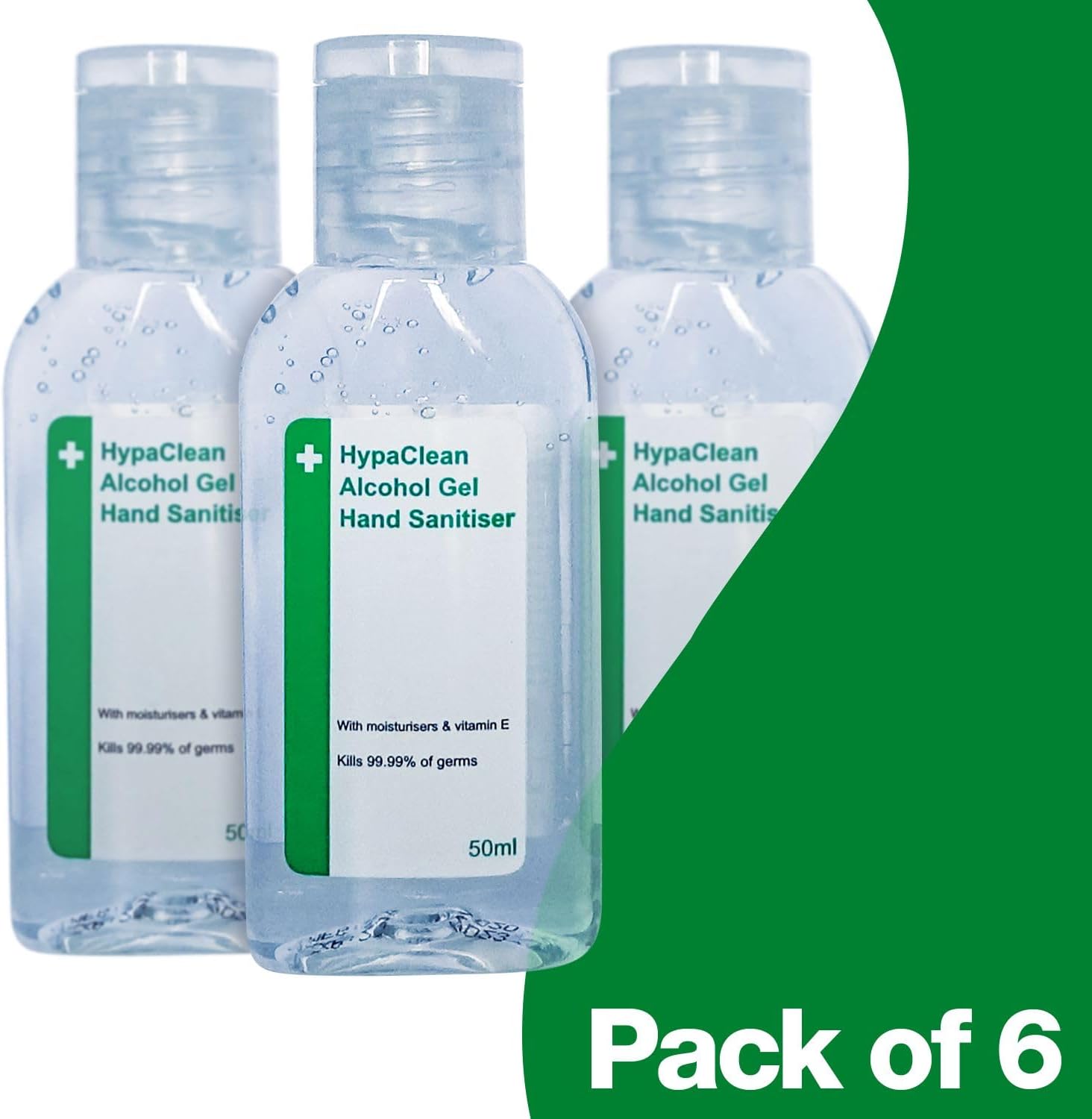 Safety First Aid Group HypaClean Antibacterial Alcohol Hand Gel 50ml Travel Size, Pack 6