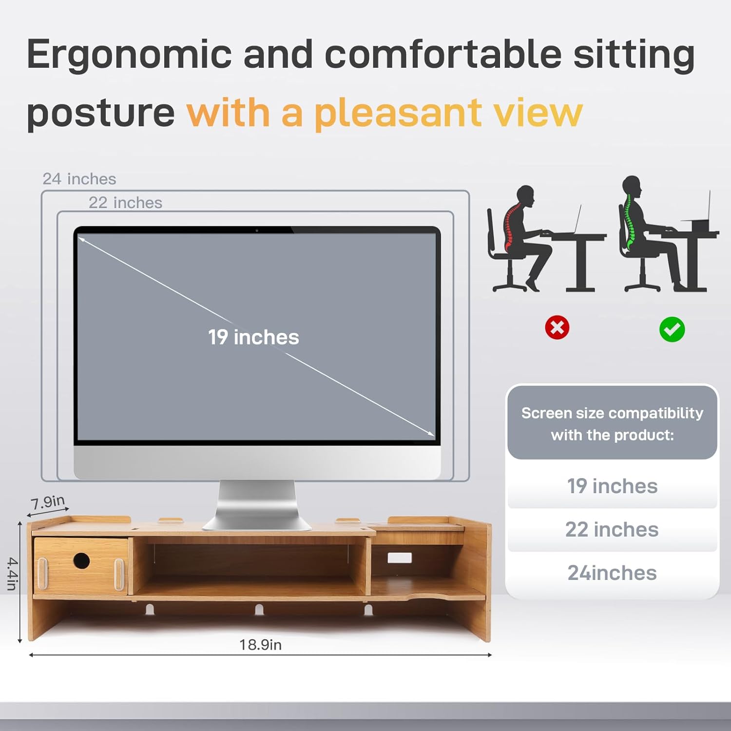 - ERGONOMIC DESIGN: The monitor riser is convenient for using your monitor and laptop at a fixed raised position for expanding viewing angle, which can help reducing neck strain, back pain and improving ergonomics.