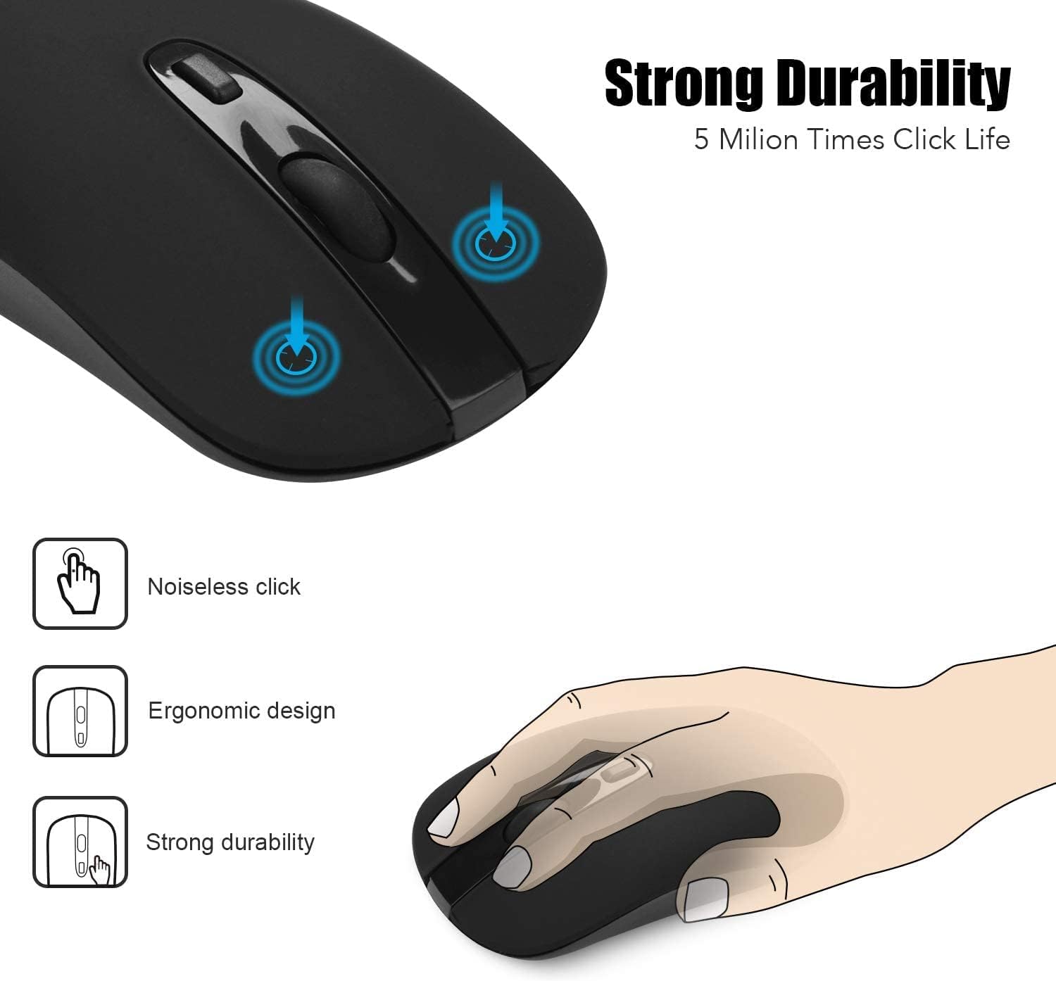 - 【LONGER LIFESPAN】Laptop mouse passed 5,000,000 times keystroke test to guarantee extra durability. Switch button on the back of this cordless mouse to save power. And this computer mice will enter sleep mode after 15 minutes of no-operation. Press any button to wake it up. Note: powered by 2*AAA battery (not included)